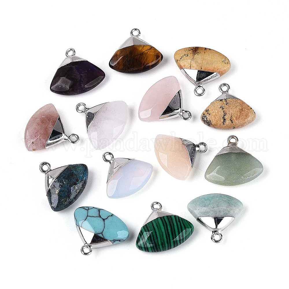 Подвески в форме ракушек из смеси натуральных и синтетических камней, с платиновой и латунной фурнитурой, смешанные окрашенные и неокрашенные