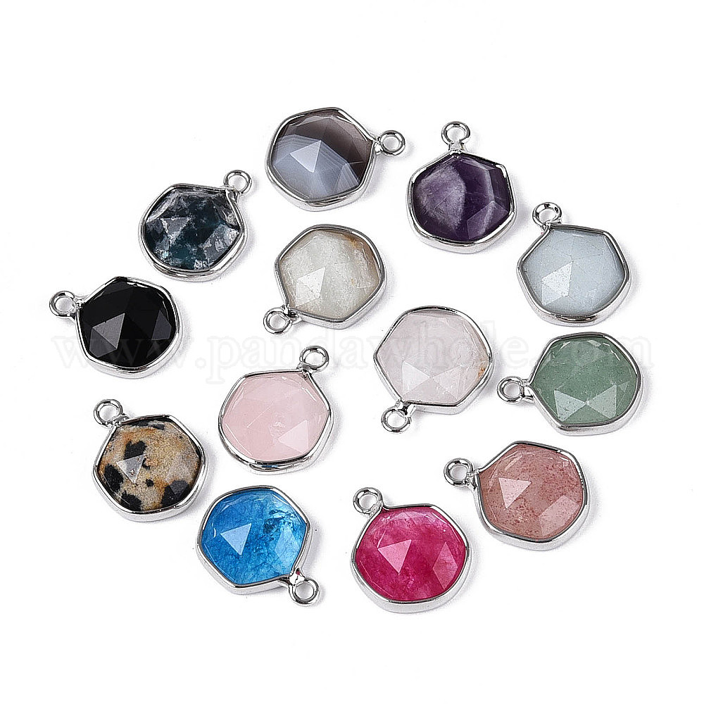 Природные и синтетические смешанные каменные подвески, граненые шестиугольные подвески, с платиновой и латунной фурнитурой, смешанные окрашенные и неокрашенные