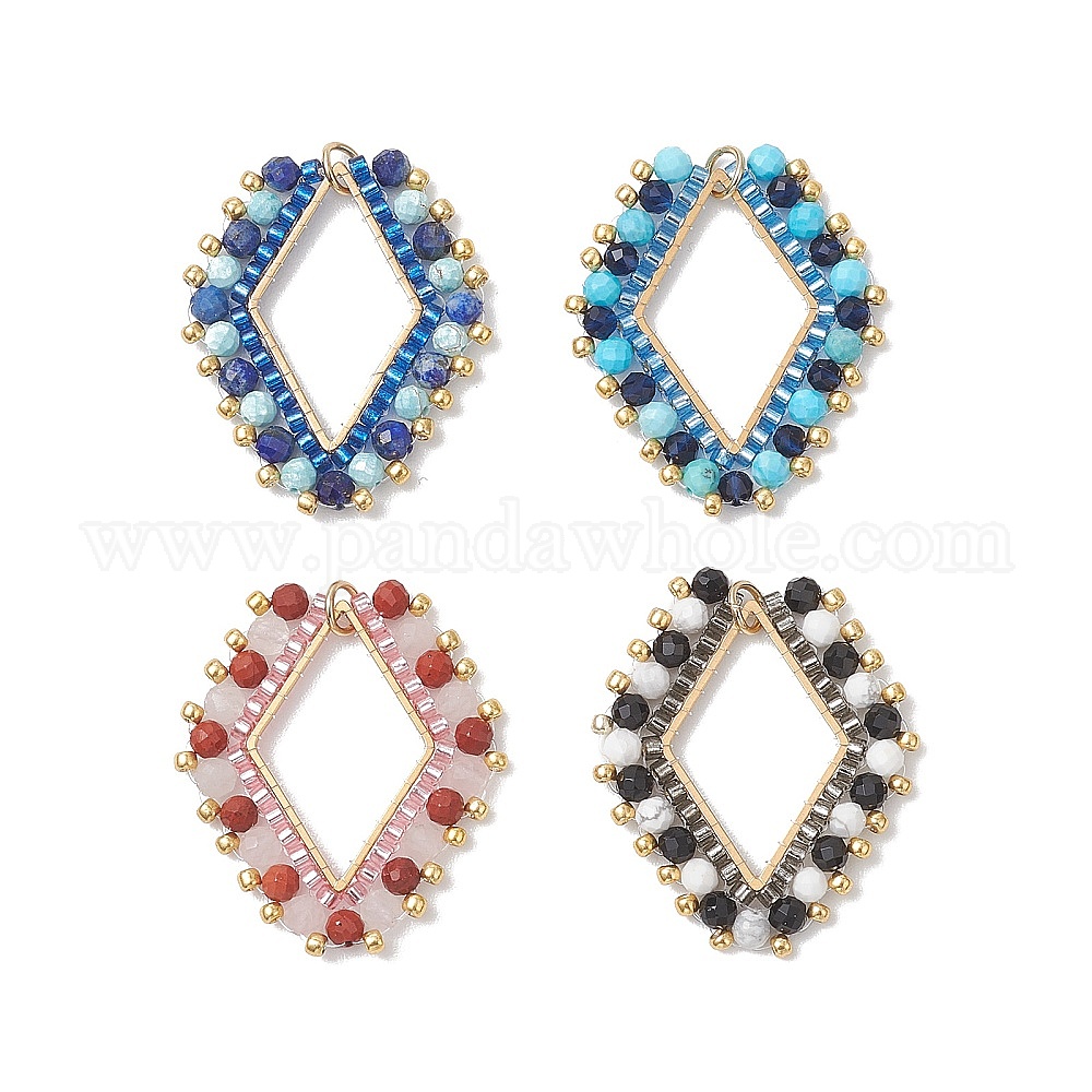 • (52) Непрозрачная лаванда Подвески из натуральных смешанных драгоценных камней, ограненных круглыми бусинами и стеклянными бусинами, подвески в форме ромба с 304 соединительными кольцами из нержавеющей стали, золотые, смешанные окрашенные и неокрашенные, разноцветные, 32.5x27.5x3.5 мм, отверстие : 3 мм