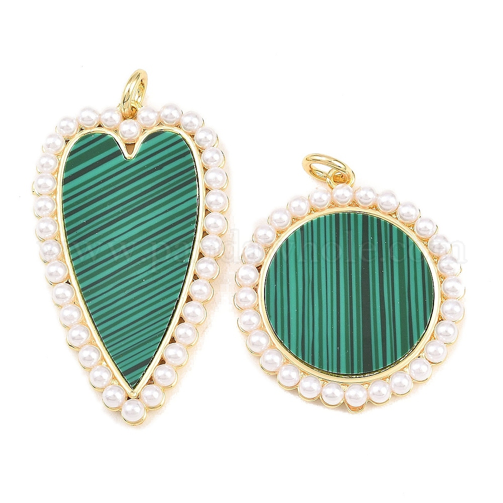 Латунь с подвесками из синтетического малахита, с кромкой из АБС-пластика, имитирующей жемчуг, реальный 18 k позолоченный, долговечный, стойки покрытие, без свинца и без кадмия