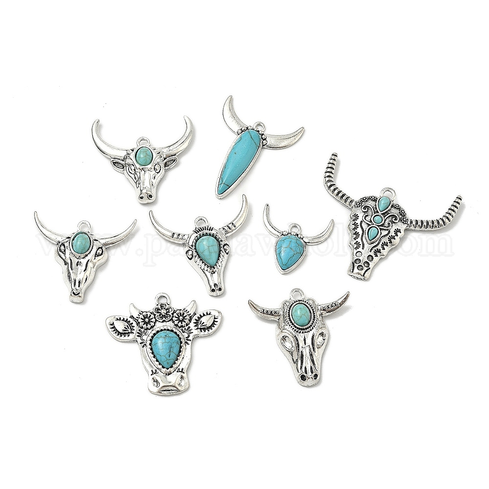Богемные синтетические бирюзовые подвески в виде коров, подвески из сплава драгоценных камней в тибетском стиле