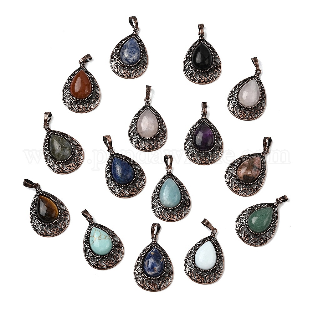 Подвески с драгоценными камнями, с винтажной латунной рамкой красного медного оттенка