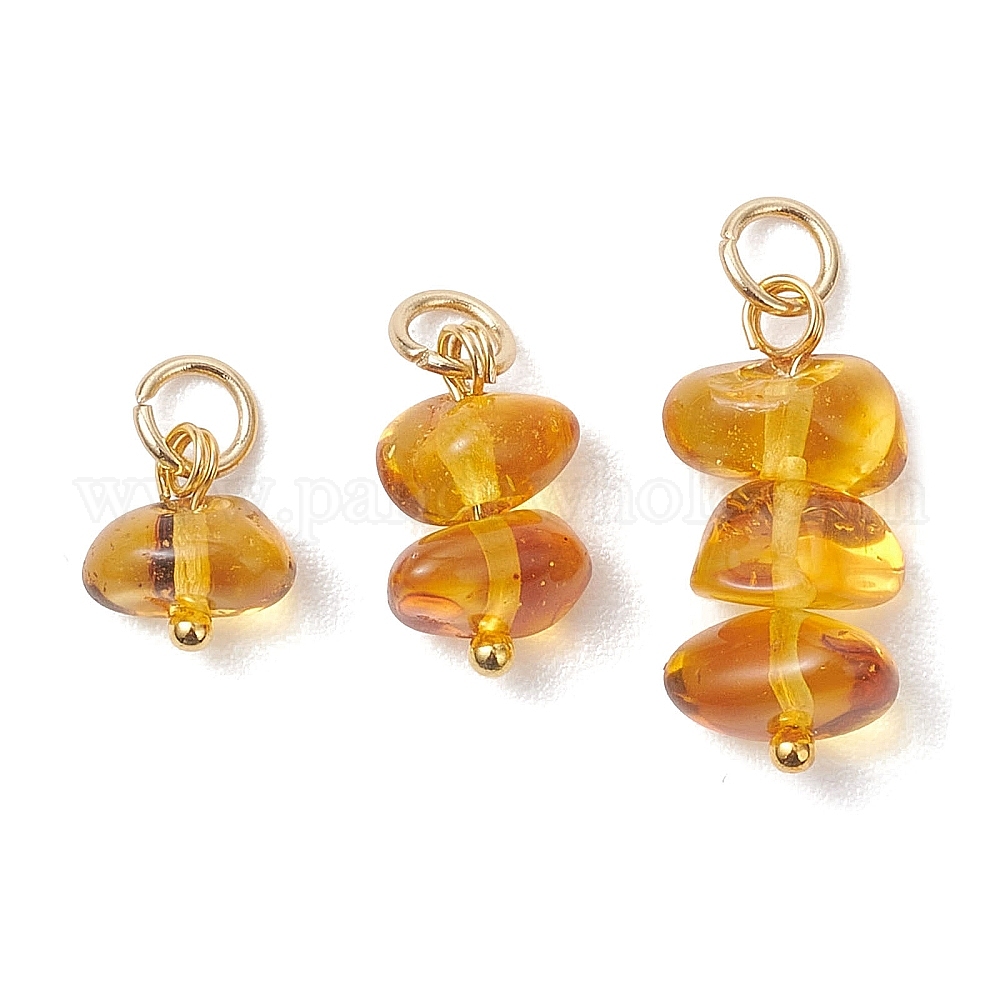 • Золотой 3шт. 3 стили подвесок из натуральных янтарных самородков, подвески из бисера, 304 фурнитура из нержавеющей стали, золотые, 9~19.5x8.5~9.5x6~7 мм, Перейти кольцо: 5x0.8 мм, 3.4 мм внутренним диаметром, 1 шт / стиль