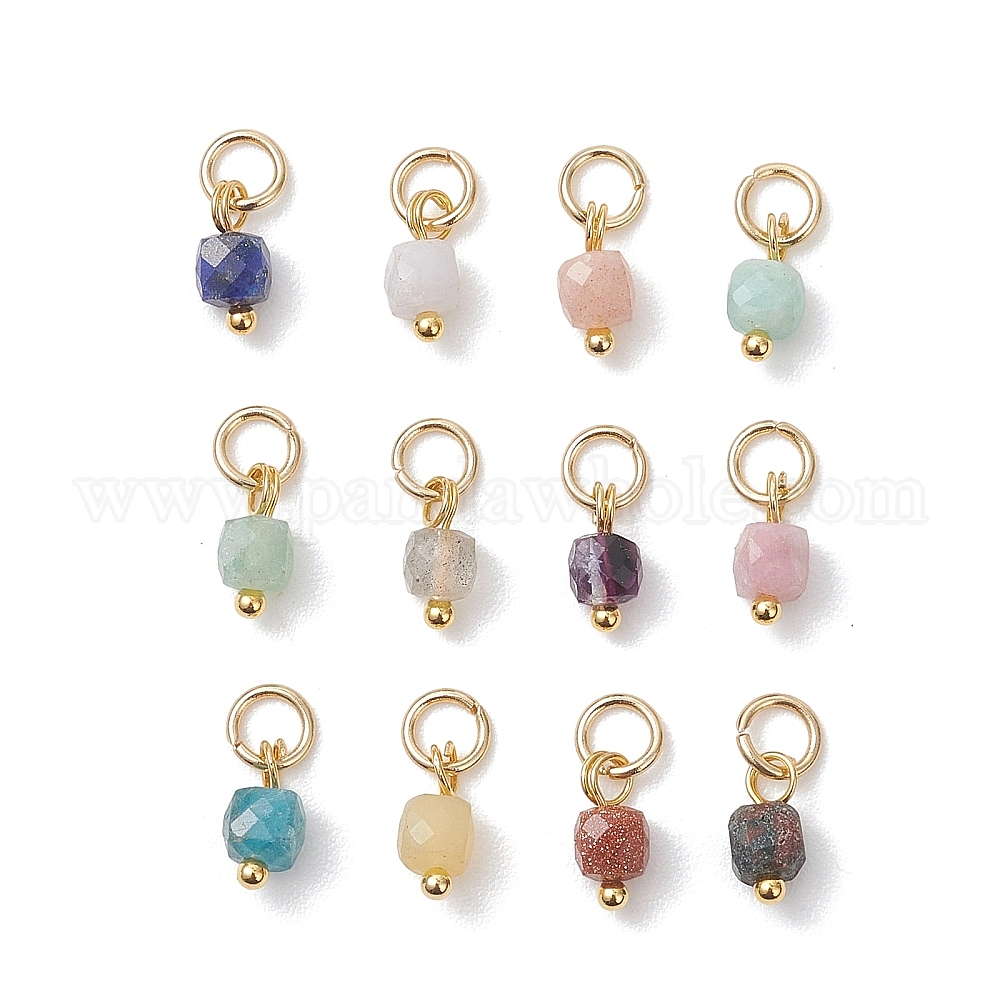 Ограненный кубический шарм из натуральных смешанных драгоценных камней, с 304 фурнитурой из нержавеющей стали, золотые, смешанные окрашенные и неокрашенные