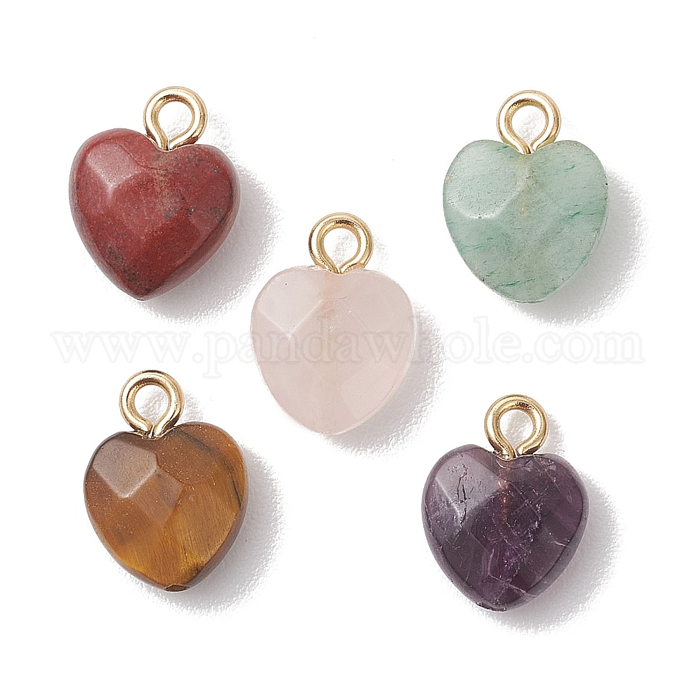 Натуральные подвески в форме сердца из тигрового глаза, красной радужной яшмы, зеленого авантюрина, розового кварца и аметиста., с 304 петлями из нержавеющей стали, золотые (039TM8)