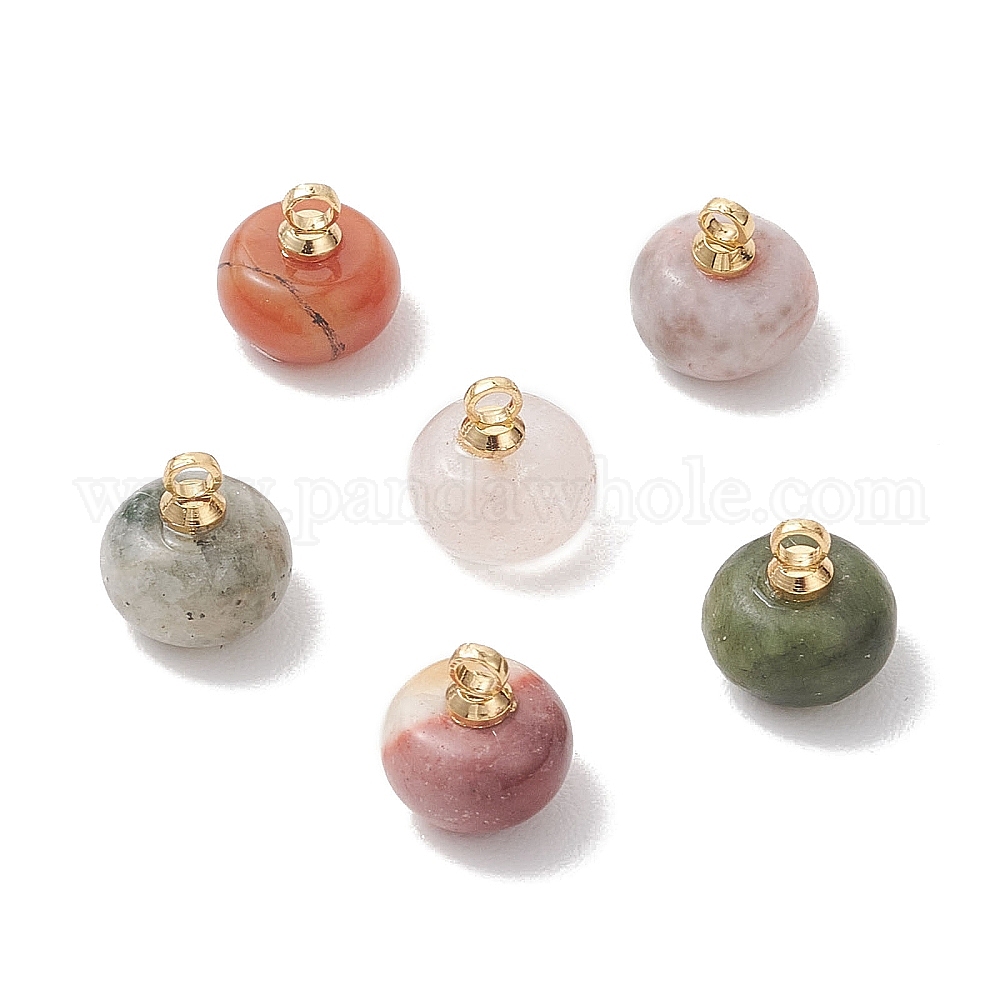 Подвески-рондели из натуральных смешанных драгоценных камней, с латунной поручительств, золотые, смешанные окрашенные и неокрашенные
