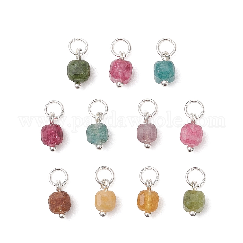 Подвески в виде кубиков из натурального разноцветного турмалина с огранкой «стол» и фурнитурой из нержавеющей стали., серебряный цвет гальваническим