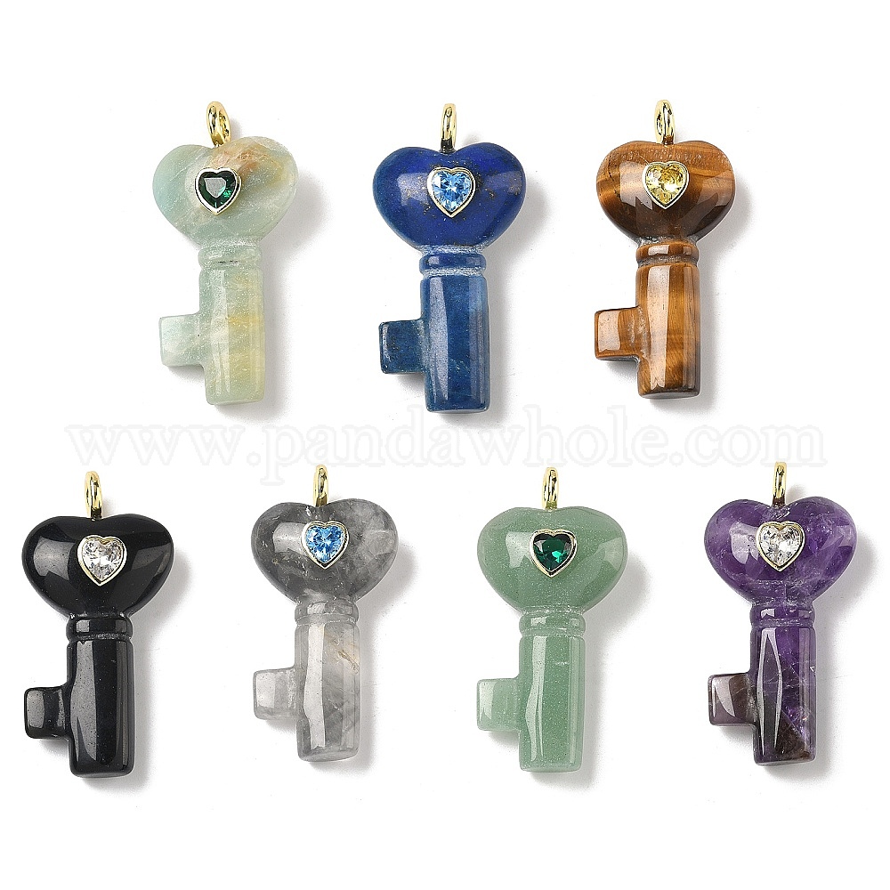 Природных драгоценных камней подвески, Подвески в виде сердечек с ключиками, украшенные латунными фианитами., золотые