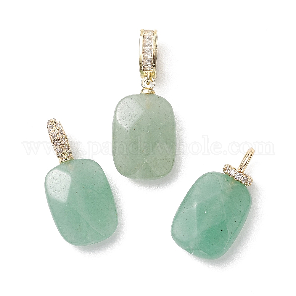 3шт. 3 стили подвесок из натурального зеленого авантюрина с огранкой, Прямоугольные подвески с латунными микропаве из прозрачных кубических цирконий в качестве застежек.