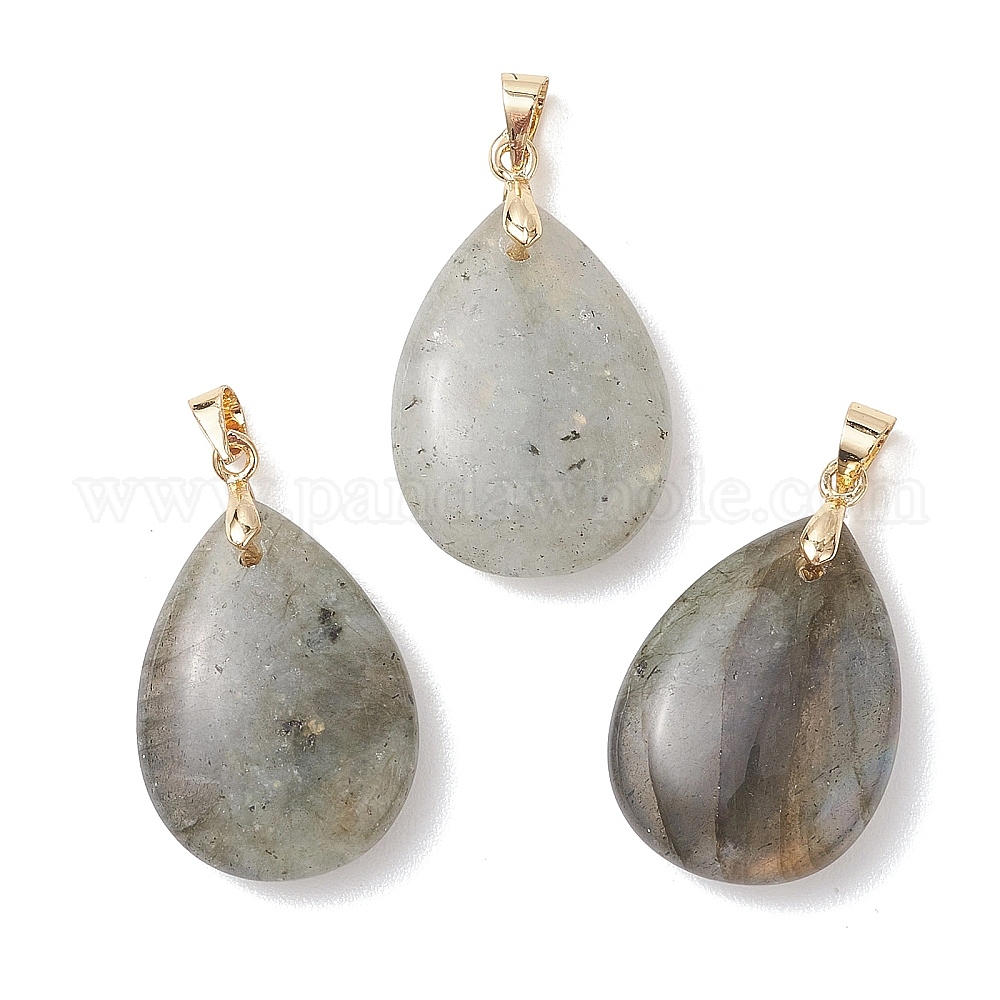 • Лабрадорита Природные подвески лабрадорита, подвески-слезинки с латунными дужками, золотые, 25x18x7 мм, отверстие : 4x3.5 мм