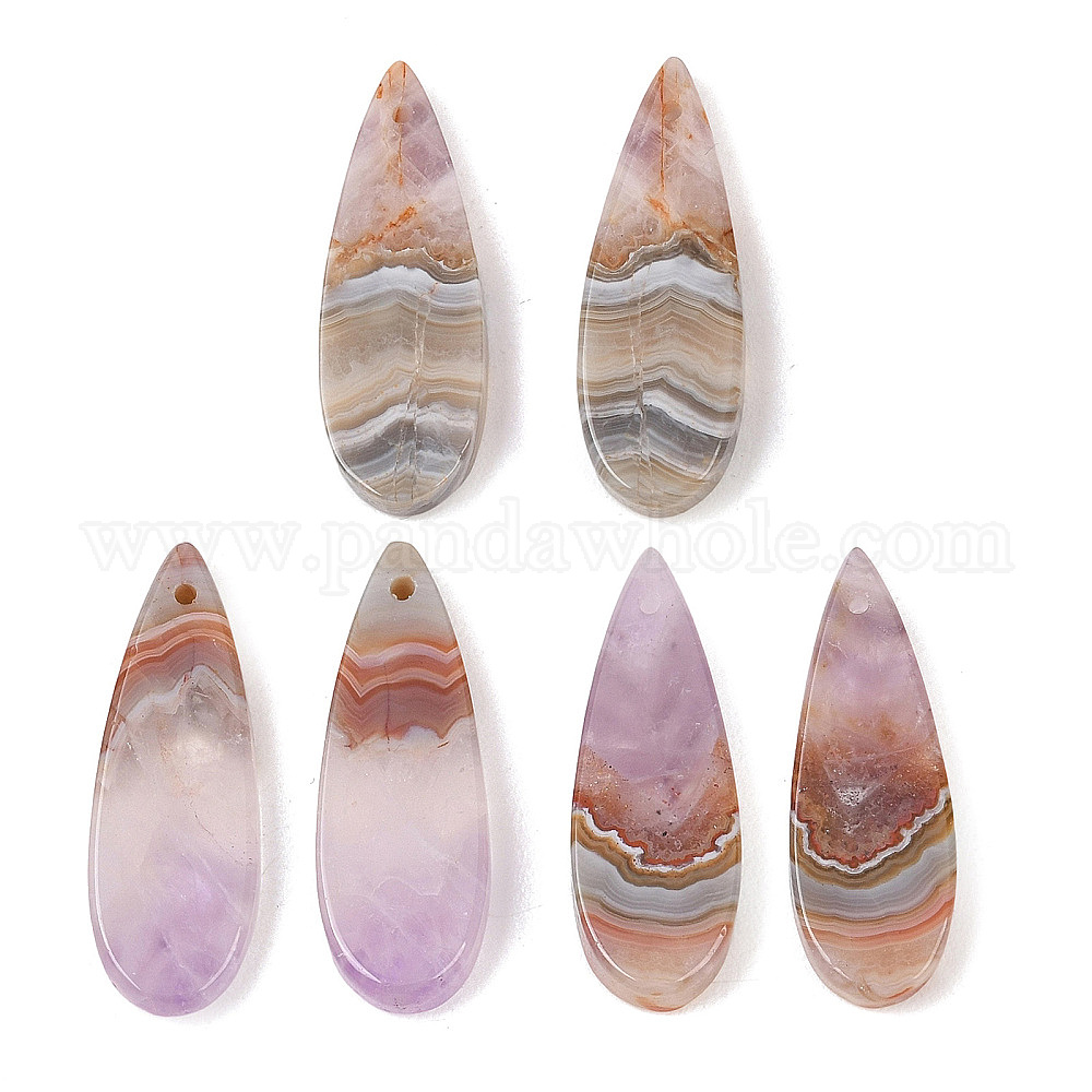 Подвески из натурального аметиста и кружевного агата, слезинки