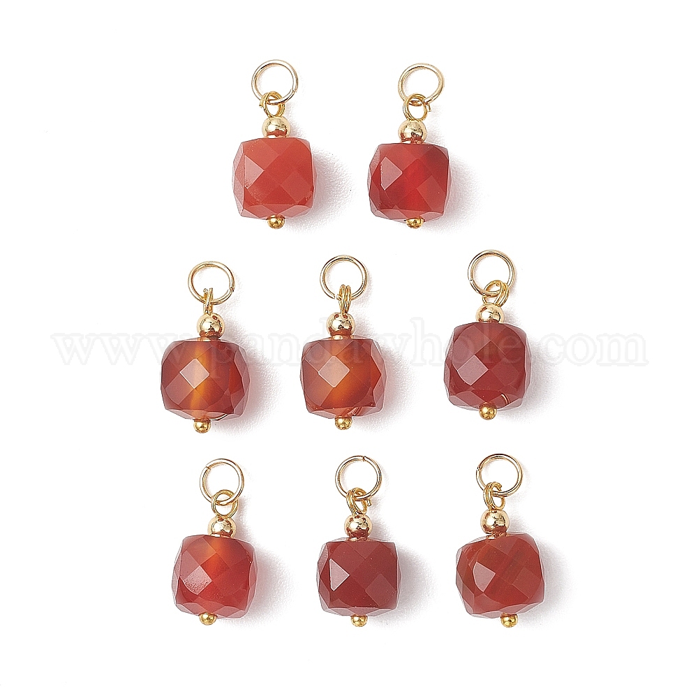 Натуральные ограненные кубические подвески из сердолика, с латунными круглыми распорными бусинами, золотые