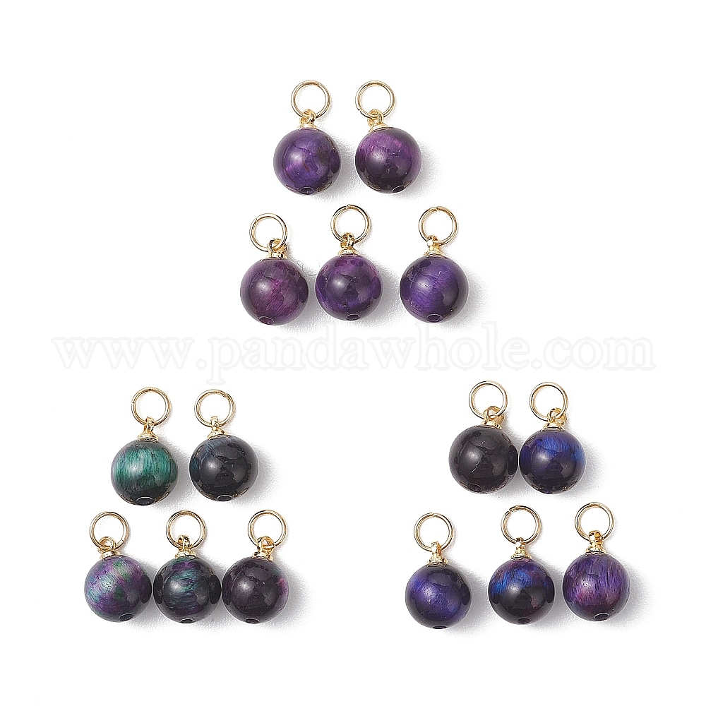 Круглые подвески из окрашенного натурального тигрового глаза, золотые