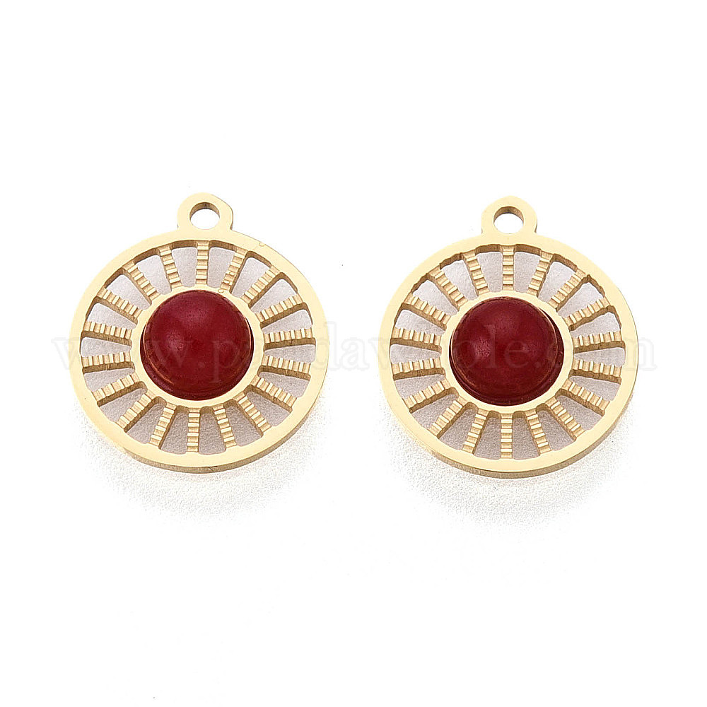 Плоские круглые подвески из натуральных драгоценных камней, с 304 полыми креплениями из нержавеющей стали, реальный 14 k позолоченный