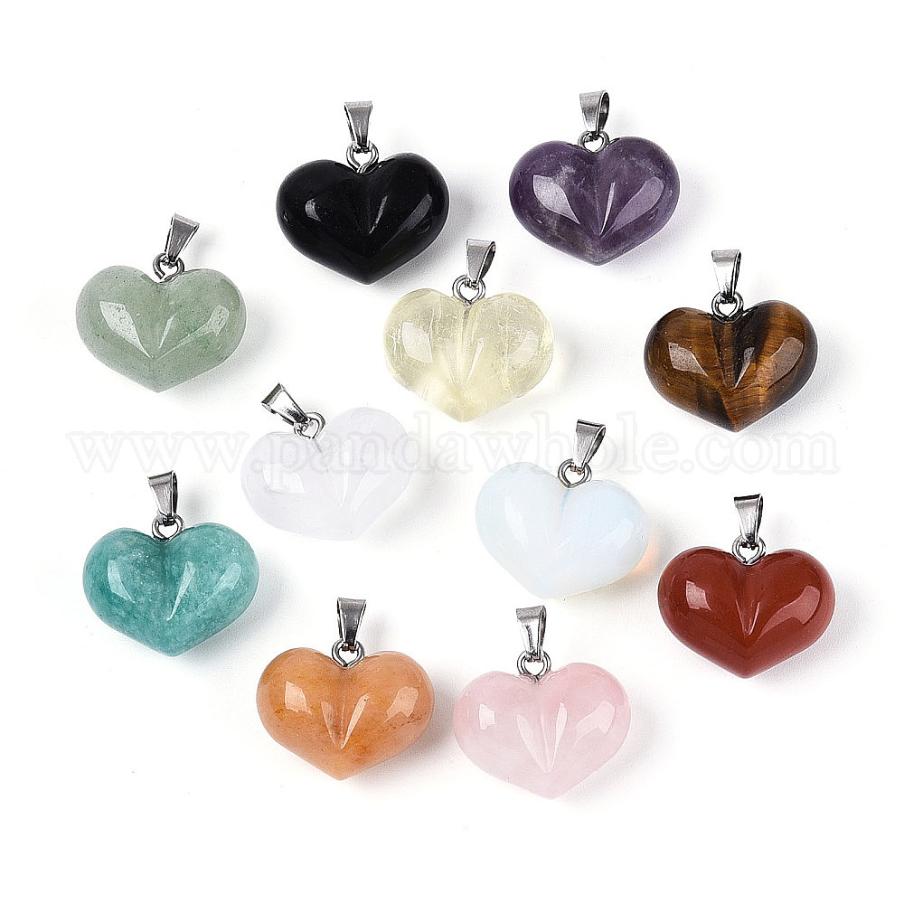 • Смешанные камни Массивные подвески в форме сердца из натуральных и синтетических камней, с 304 защелкой из нержавеющей стали на поручнях, цвет нержавеющей стали, 17~18x20~20.5x11~12 мм, отверстие : 5.5~6x2.5~3.5 мм