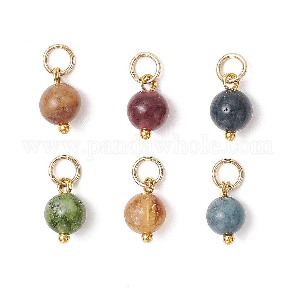 Подвески из окрашенного натурального зеленого нефрита, имитирующего турмалин, круглые бусины., с 304 фурнитурой из нержавеющей стали, золотые