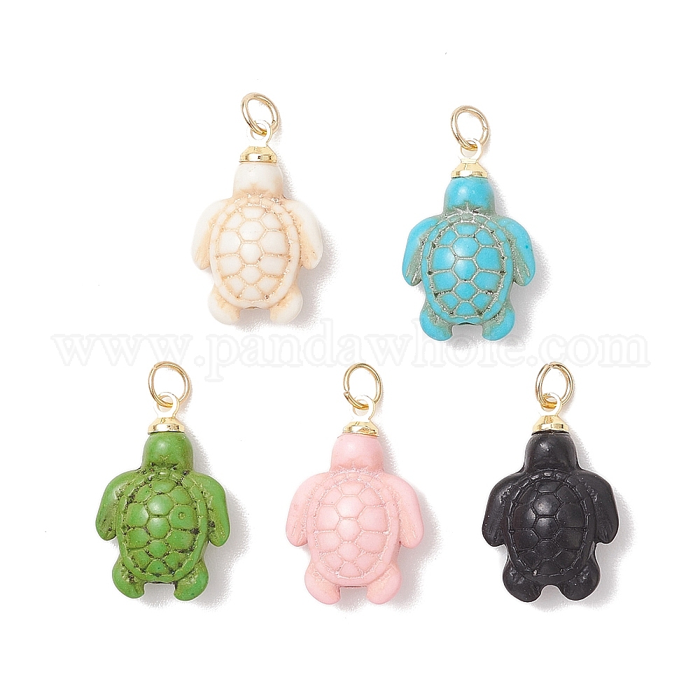 Подвески из окрашенной синтетической бирюзы, Подвески в виде морских черепах с 304 фурнитурой из нержавеющей стали, золотые
