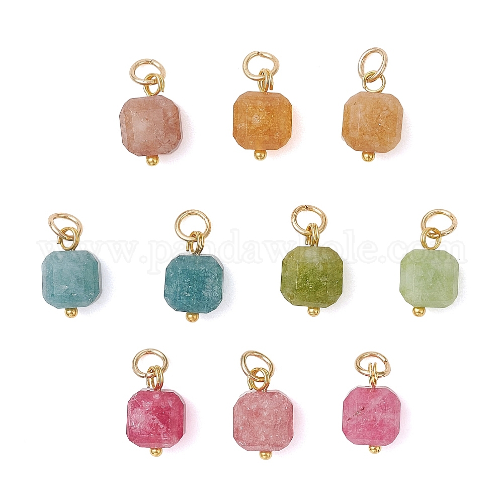 Окрашенный натуральный белый нефрит, имитация турмалина, ограненные кубические подвески, с 304 фурнитурой из нержавеющей стали, золотые