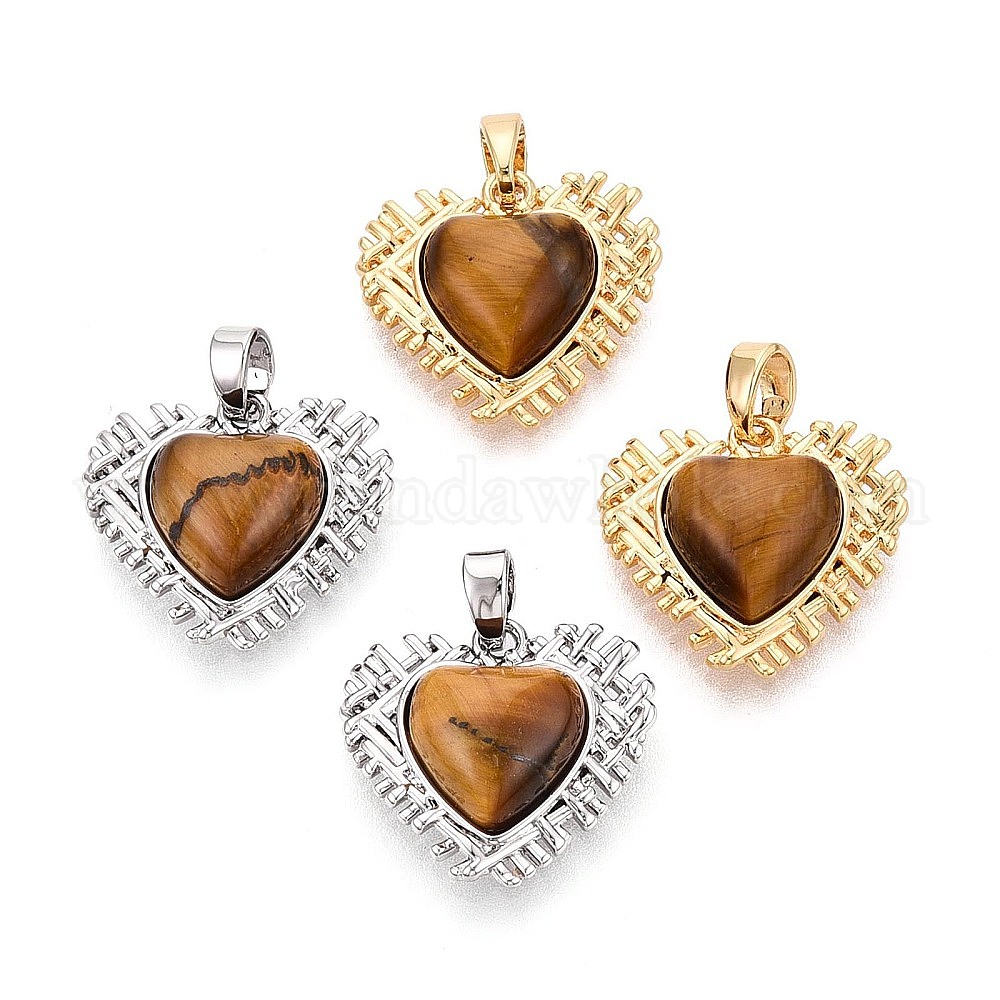 Природных тигровый глаз подвески, подвески в форме сердца с латунной оправой