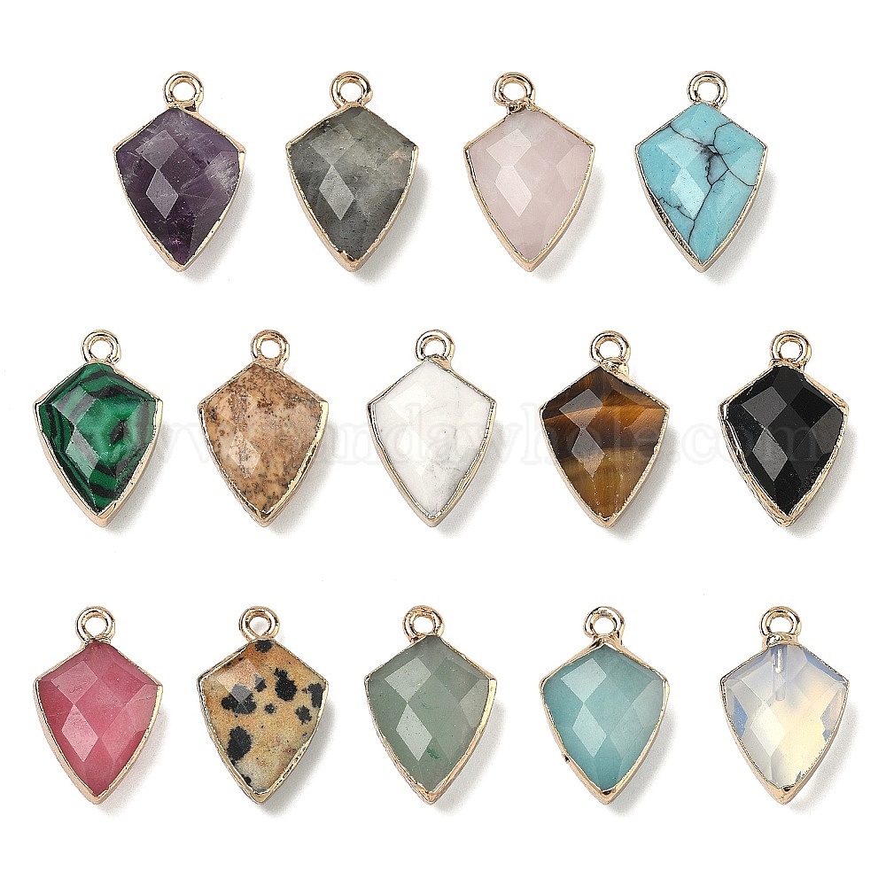 Драгоценный камень подвески, латунные щиты-талисманы, граненые, золотые