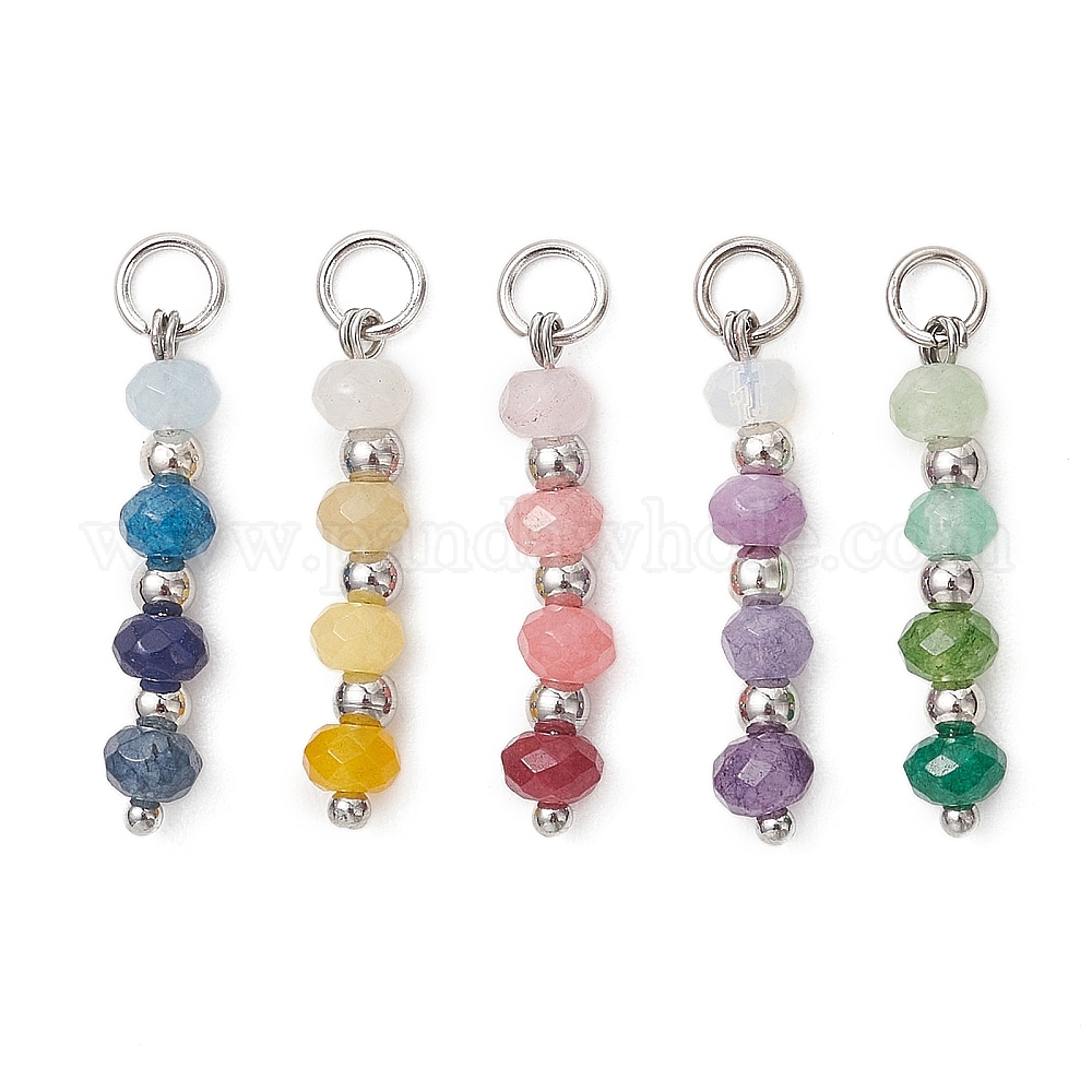 • Нержавеющая Сталь Цвет Крашеные нефрита подвески натуральный Malaysia, граненые круглые подвески из бисера, с 304 фурнитурой из нержавеющей стали, разноцветные, цвет нержавеющей стали, 23~24x4~5 мм, Перейти кольцо: 5x0.8 мм, внутренний диаметр: 3.5 мм