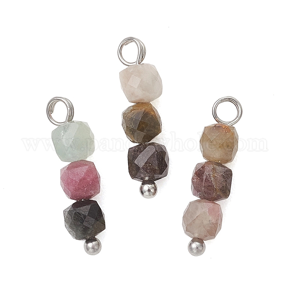 • Платина Подвески из натурального разноцветного турмалина, подвески из граненых кубических бусин с латунными петлями, платина, 16x4x4 мм, отверстие : 2 мм