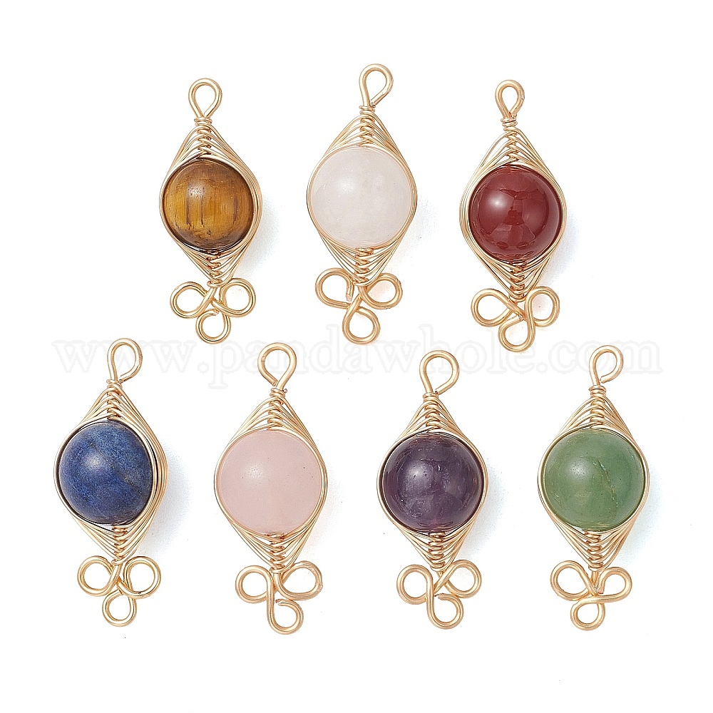 • Light Gold 7 шт. 7 цвета, натуральные смешанные драгоценные камни, подвески в виде елочки, обмотанные проволокой, Очарование лошадиных глаз, смешанные окрашенные и неокрашенные, золотой свет, 32~34x12.5~13.5x11.5~12.5 мм, отверстие : 2~2.5 мм, 1 шт / цвет