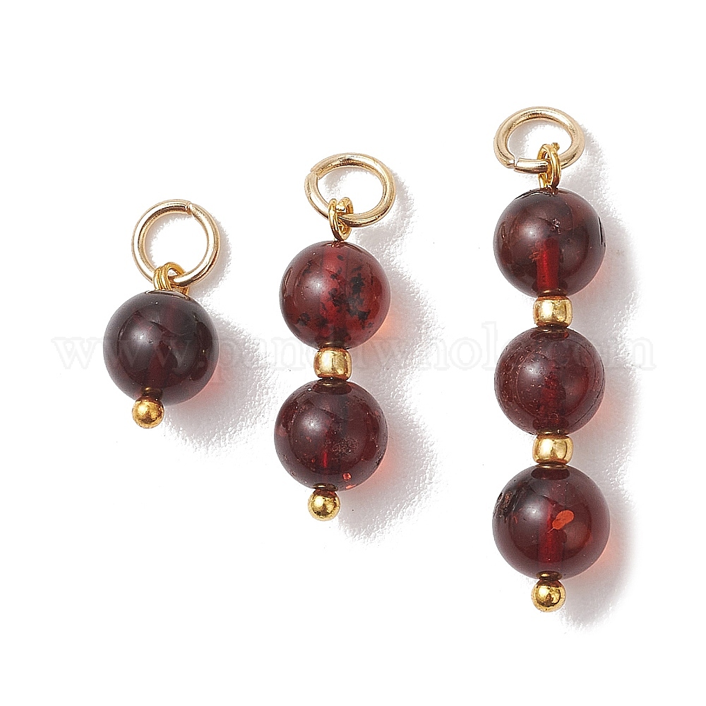 3шт. 3 стили подвесок из натурального янтаря, Круглые подвески из бусин с петлями из нержавеющей стали, реальный 304 k позолоченный