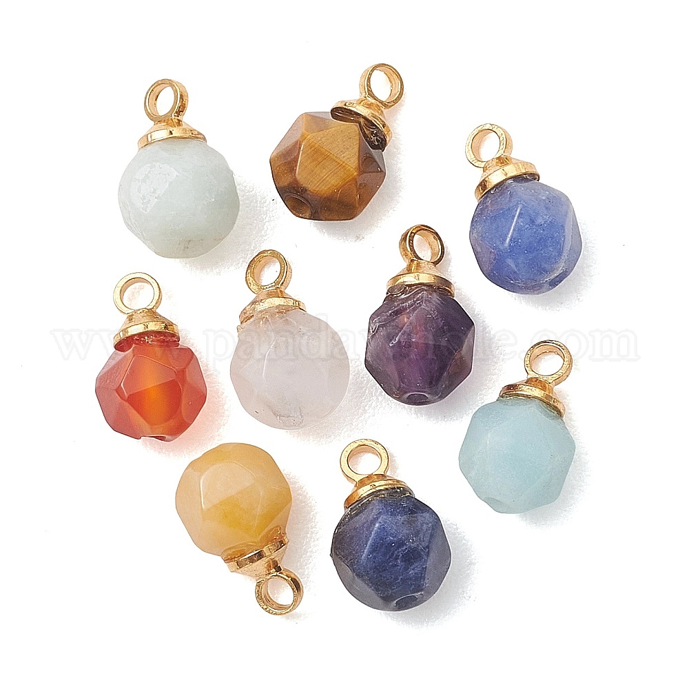 Подвески из натуральных смешанных камней, символизирующих чакры, Круглые подвески в форме звезды с гранеными элементами и латунными ушками., золотые, смешанные окрашенные и неокрашенные