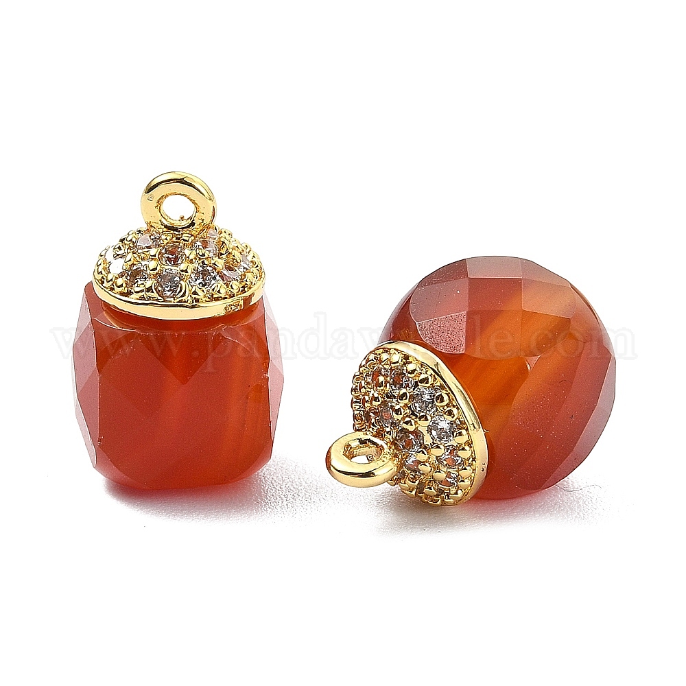 Природные сердолик подвески, Граненые кубические подвески с латунными микропаве из прозрачного кубического циркония в качестве застежек.