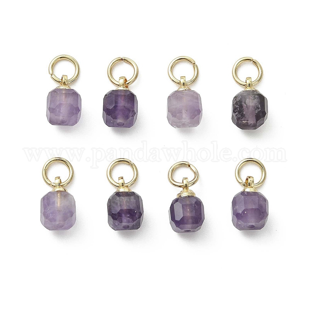 • Золотой Подвески из натурального аметиста , Граненые кубические подвески с латунными петлями., золотые, 9x5.5x5.5 мм, Перейти кольцо: 5x0.8 мм, внутренний диаметр: 3 мм
