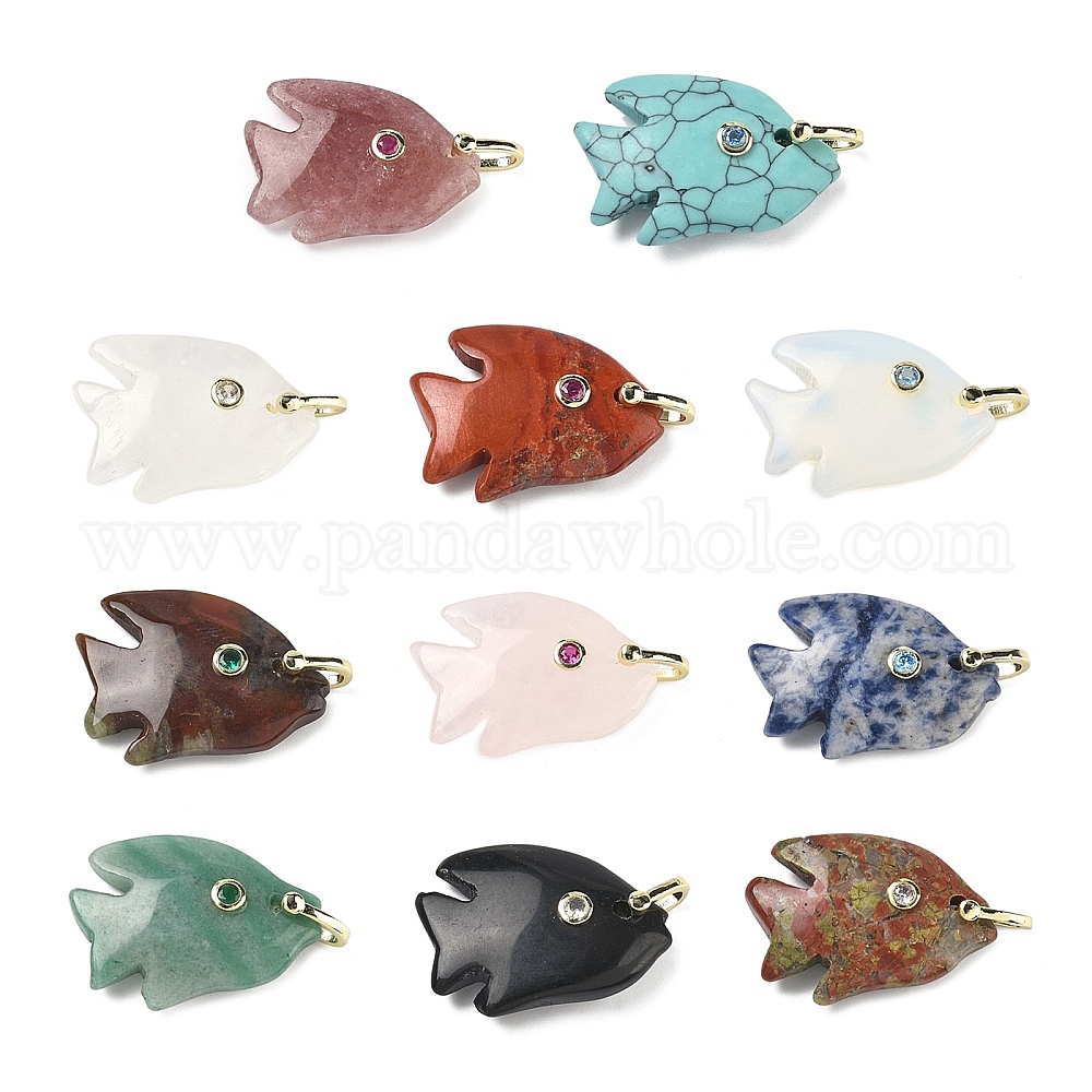 Резные подвески из драгоценных камней, Подвески в виде рыбок с фианитами и латунной фурнитурой, золотые, стойки покрытие