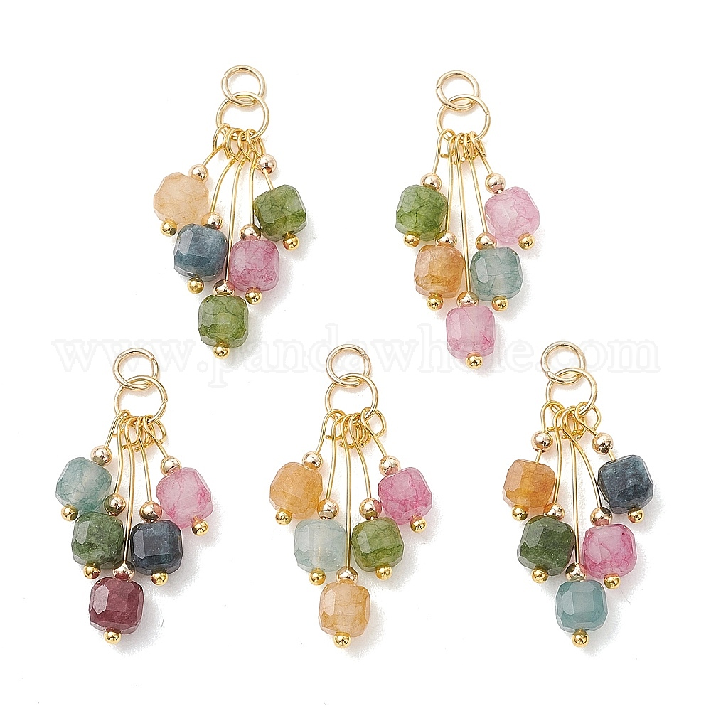 • Золотой Подвески из натурального разноцветного турмалина, граненые кубические бусины, подвески-кисточки с открытыми соединительными кольцами из нержавеющей стали., золотые, 304 мм, отверстие : 23~25 мм