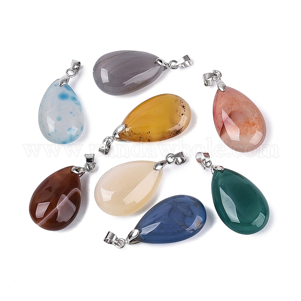 Подвески из натурального агата (окрашенного и нагретого), слезинки, с защелкой из нержавеющей стали на поручнях, цвет нержавеющей стали