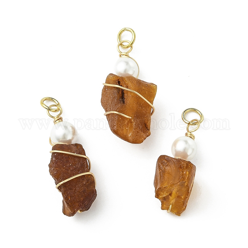 Подвески с градиентным цветом, изготовленные из натурального янтаря и медной проволоки., самородки прелести, с оболочкой жемчуг (03BHY2)