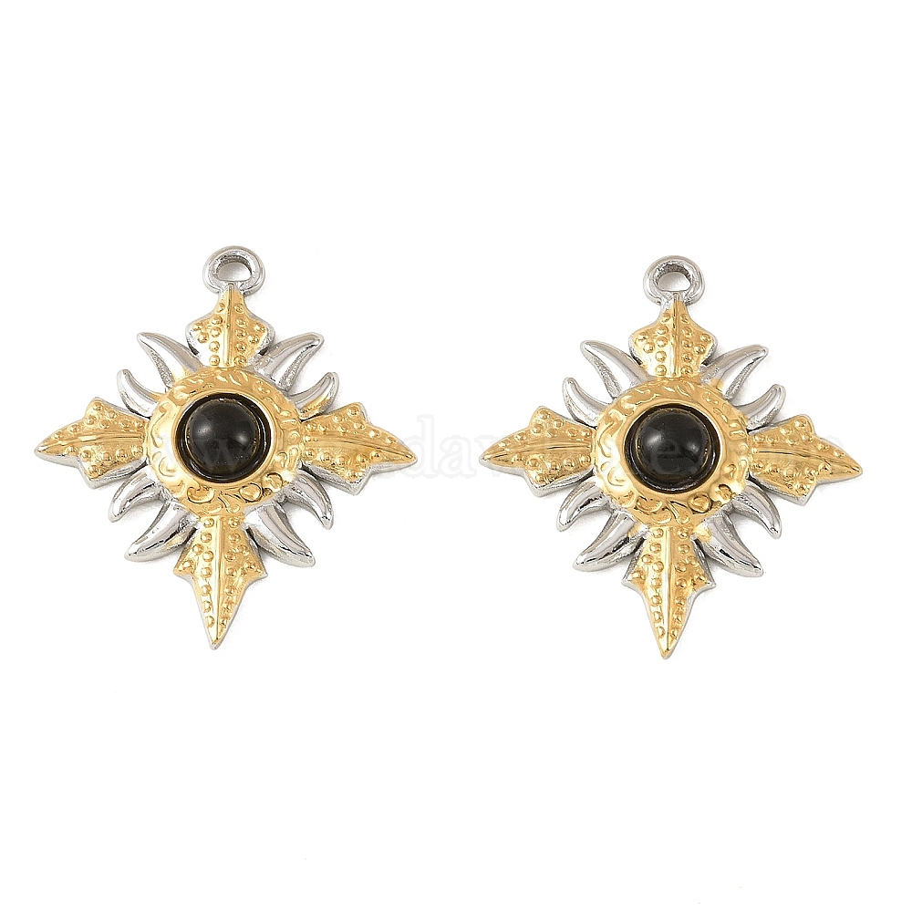 Подвески из натурального черного оникса (окрашенные и нагретые), двухцветные 304 подвески в форме ромба из нержавеющей стали с оправой, цвет нержавеющей стали