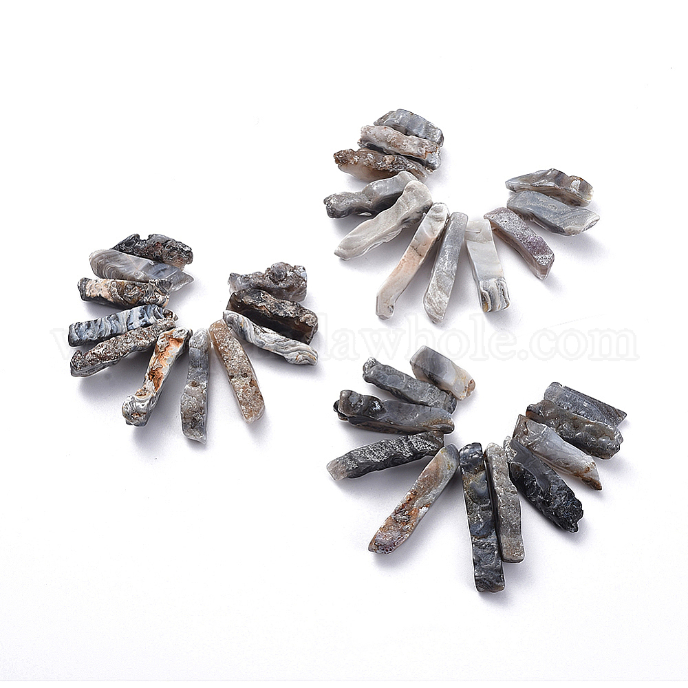 • Натуральный Агат Природные подвески агат, прямоугольные, 19~47.5x7~11x5~11.5 мм, отверстие : 1.2 мм, 11 шт / комплект