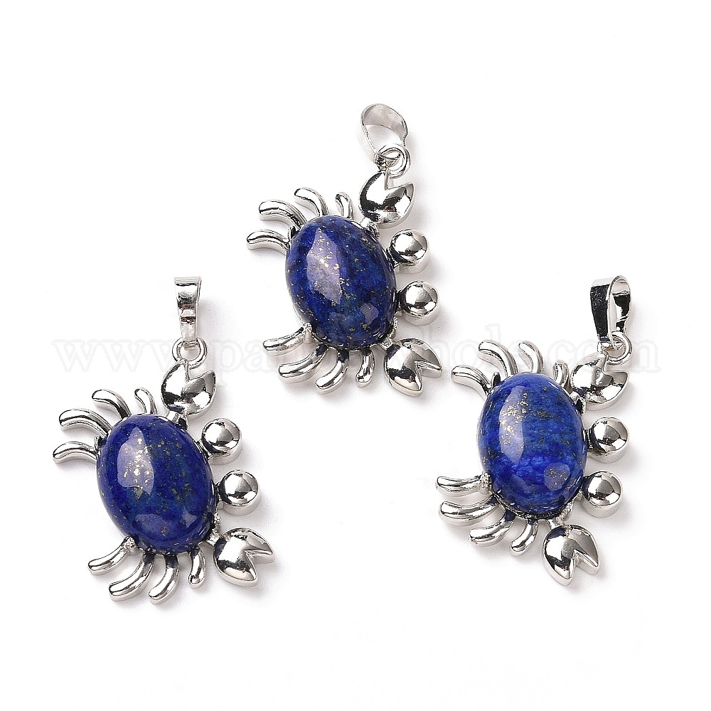Природный лазурит подвески, латунная фурнитура с платиновым покрытием, без кадмия и без свинца, краб