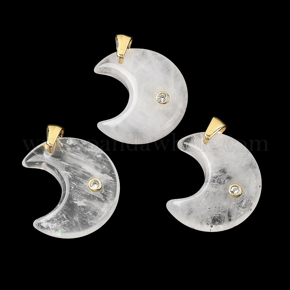Природного кварца хрустальных подвесок, с микропаве из кубического циркония на латунной основе и фурнитурой из нержавеющей стали., амулеты в виде луны из горного хрусталя, золотые