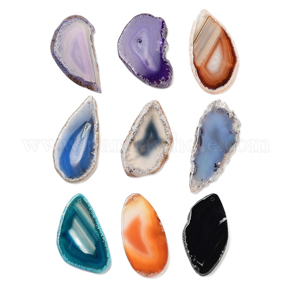 Природные агат ломтики подвески, разнообразные, 40~85x23~48x4.5 мм, отверстие : 2 мм
