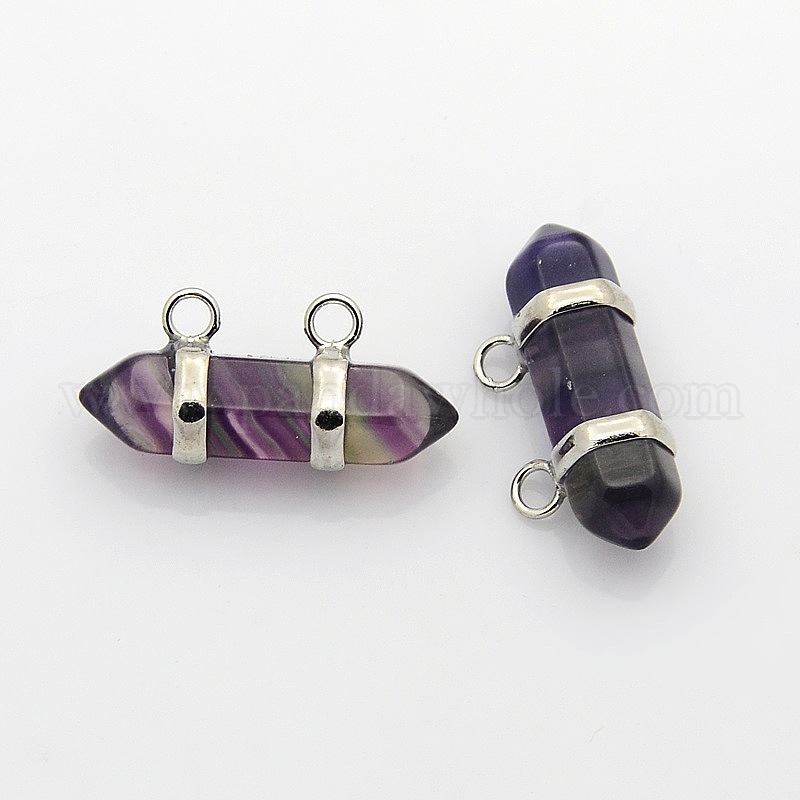 Кулоны с шестигранной головкой и двойным концом с драгоценным камнем, латунная фурнитура с платиновым покрытием, 14x29~35x10 мм, отверстие : 3 мм