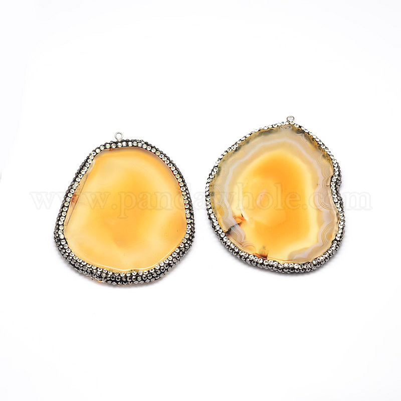 Окрашенные естественный агат самородки большие кулоны, с полимерной глины горный хрусталь и выводы из латуни платиновый оттенок