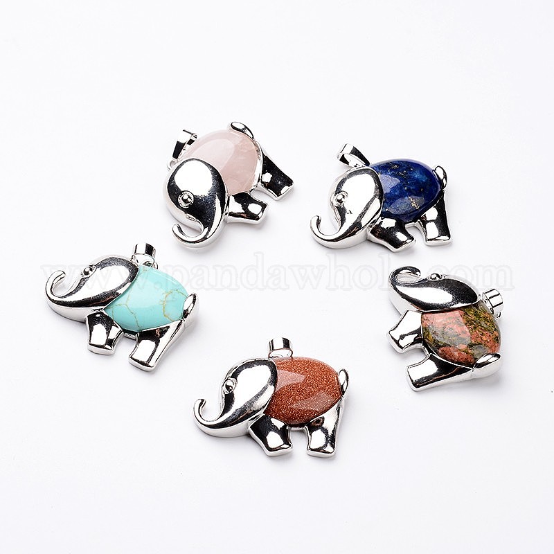 Слон платины тон латуни драгоценными камнями подвески, 31x37x9 мм, отверстие : 5x8 мм
