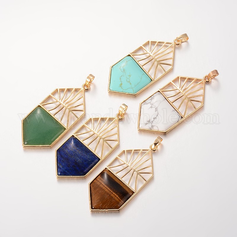 Шестигранные золотые тона латунные камни большие подвесками, 59x26x6 мм, отверстие : 5x8 мм