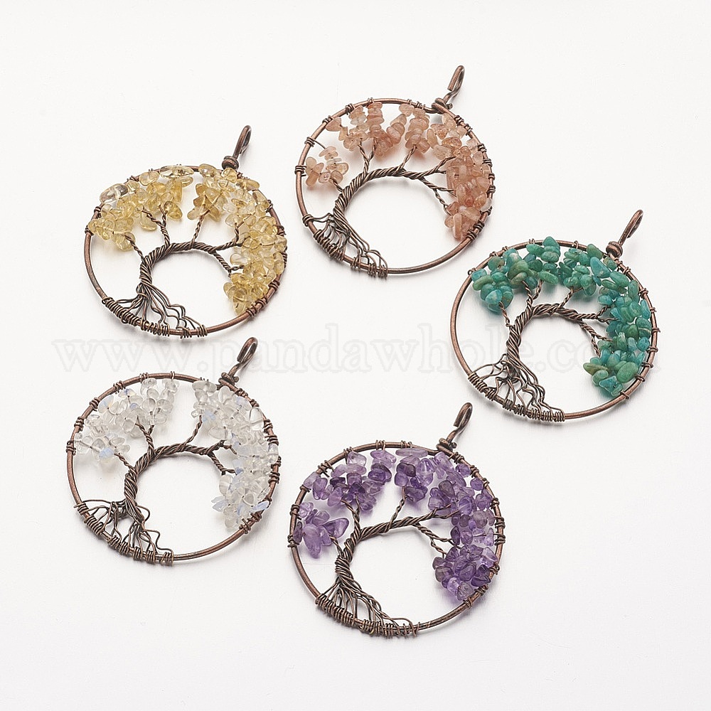 Драгоценный камень большие кулоны, с латунной фурнитурой , плоские круглые с деревом