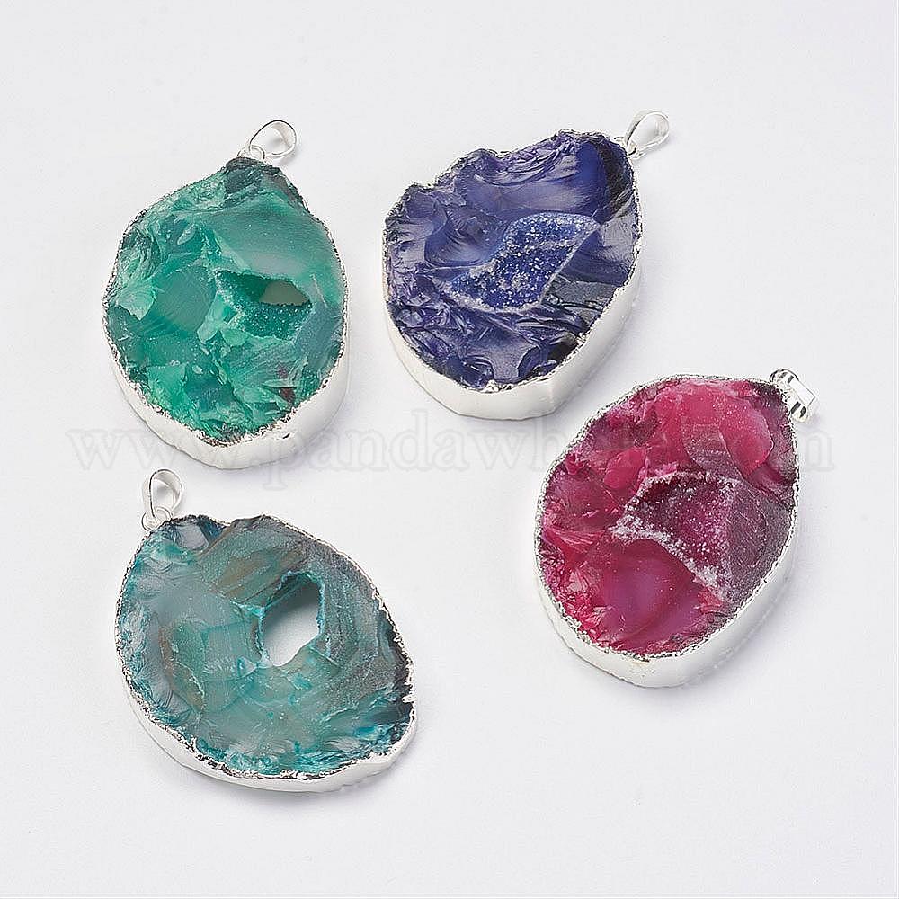 Натуральные и окрашенные подвесные агатовые подвески, с посеребренными латунными выводами, самородки