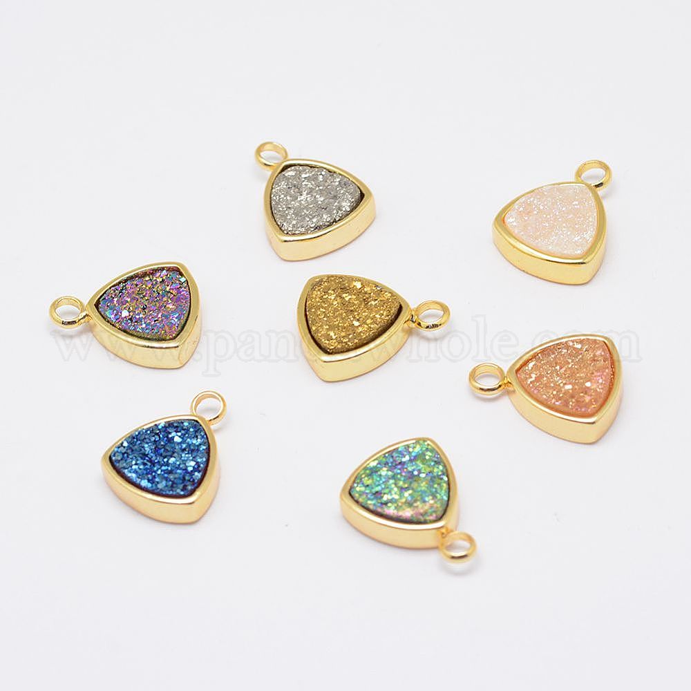 Природные дружий агатовые прелести, окрашенные, треугольные, с латунной фурнитурой , золотые