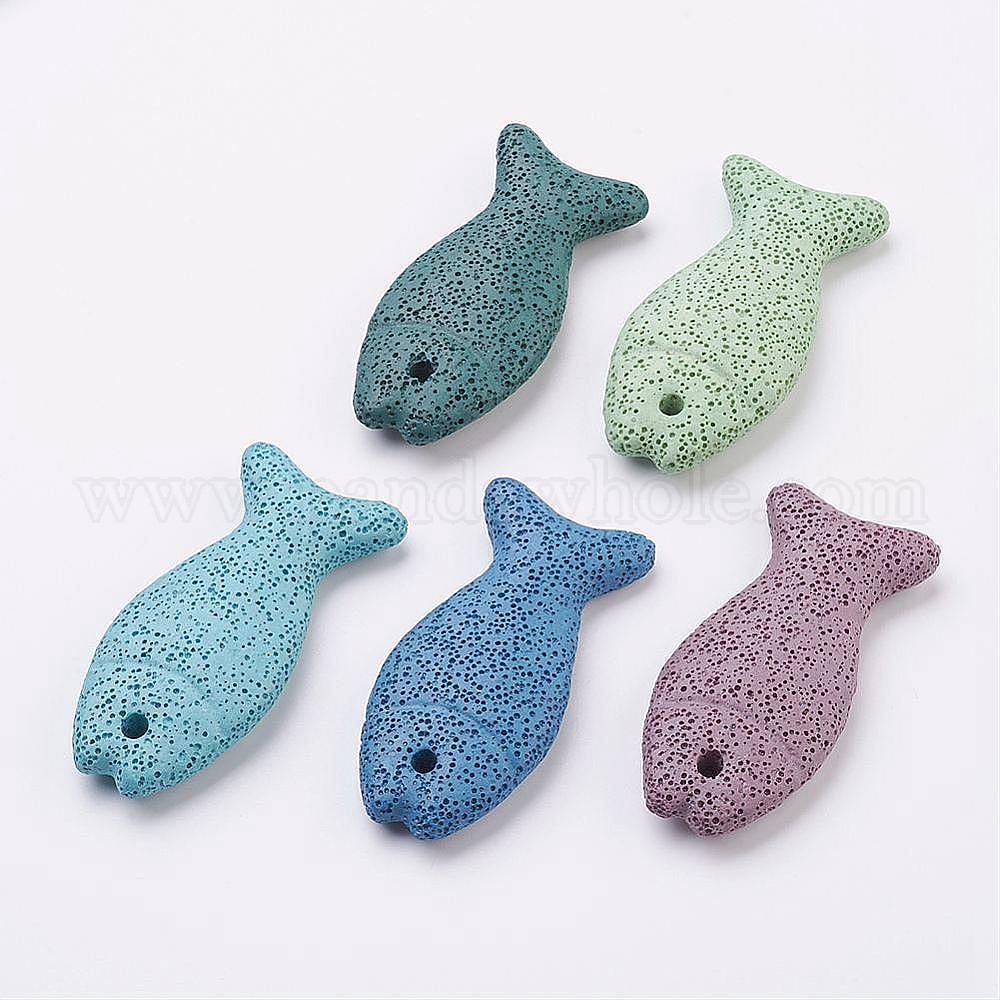 Большие подвески из натуральной лавы, рыба, окрашенные