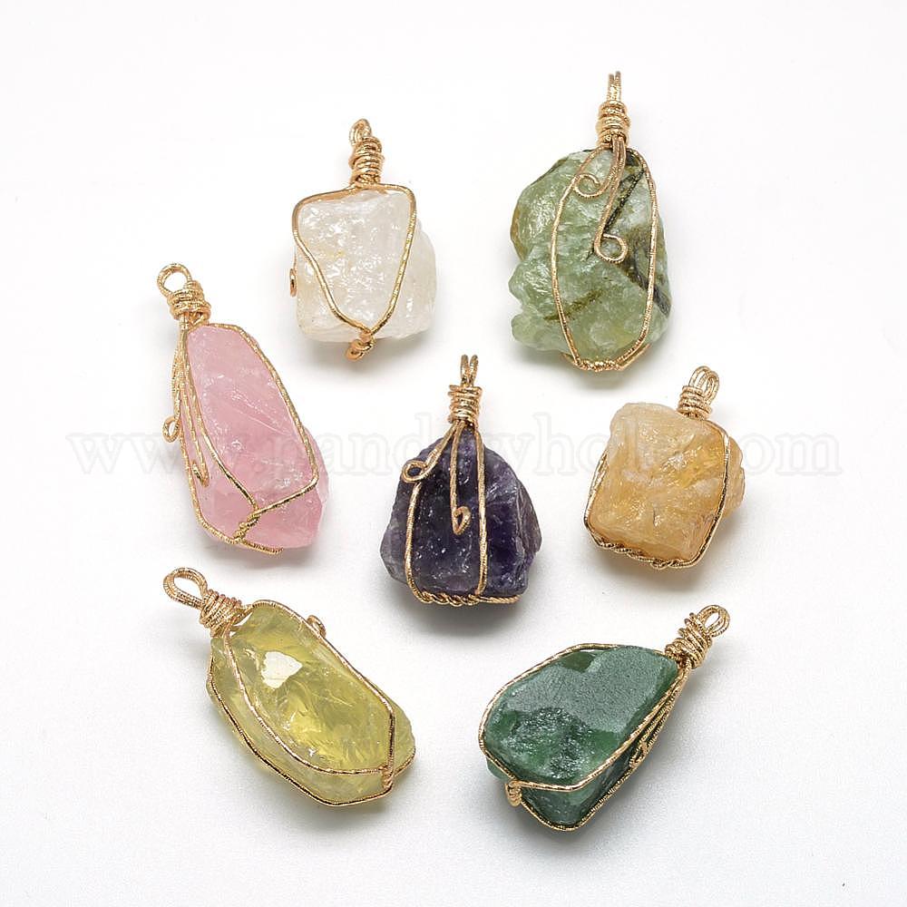 Природные каменные смешанные подвески, с латунной проволокой, самородки, золотые