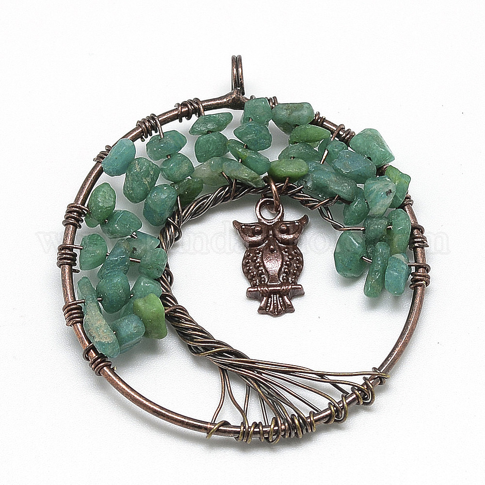 Чип драгоценные камни большие подвески, с латунными проволоками и сплавом, дерево, Красная медь